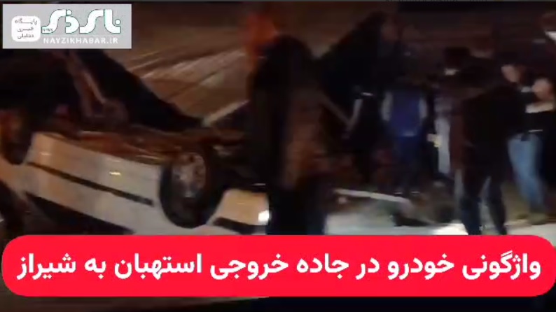 واژگون شدن خودرو پژو پارس در جاده خروجی استهبان به شیراز