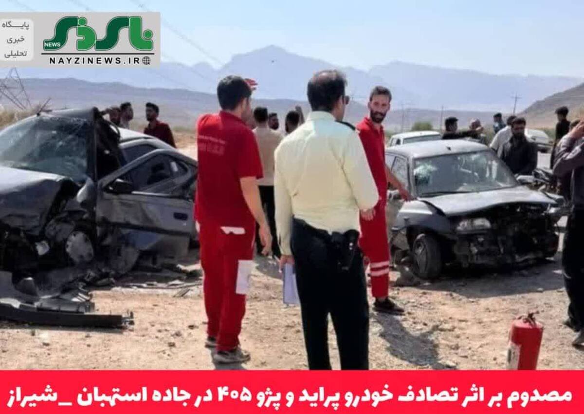 محمدجواد خیرات رئیس جمعیت هلالاحمر شهرستان استهبان گفت: در ساعت ۱۲:۰۶ سهشنبه ۲۲ مهرماه، گزارشی مبنی بر تصادف دو دستگاه خودروی سواری پراید و پژو ۴۰۵ در کیلومتر ۳۰ جاده استهبان_شیراز، فرعی روستای خیر به هلالاحمر اعلام شد.