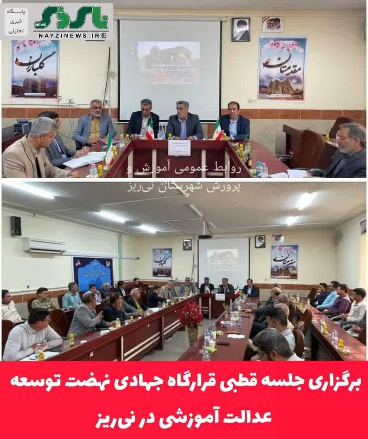 جلسه قطبی قرارگاه جهادی نهضت توسعه عدالت در فضاهای آموزشی و پرورشی با مشارکت مردم، روز یکشنبه ۲۷ مهرماه به میزبانی مدیریت آموزش و پرورش شهرستان نیریز برگزار شد.