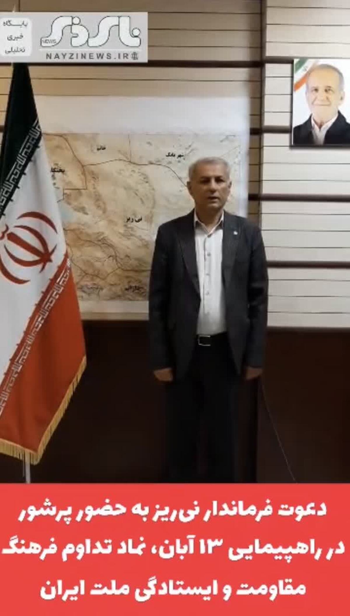 مراد هدایت، فرماندار شهرستان نیریز با دعوت از اقشار مختلف مردم بهویژه جوانان و دانش آموزان برای حضور گسترده در راهپیمایی یومالله ۱۳ آبان، تأکید کرد: دشمنان انقلاب باید بدانند که فرهنگ مقاومت، ایستادگی بر حق و یاد شهیدان در رگهای همه نسلهای ملت ایران زنده و جاری است.