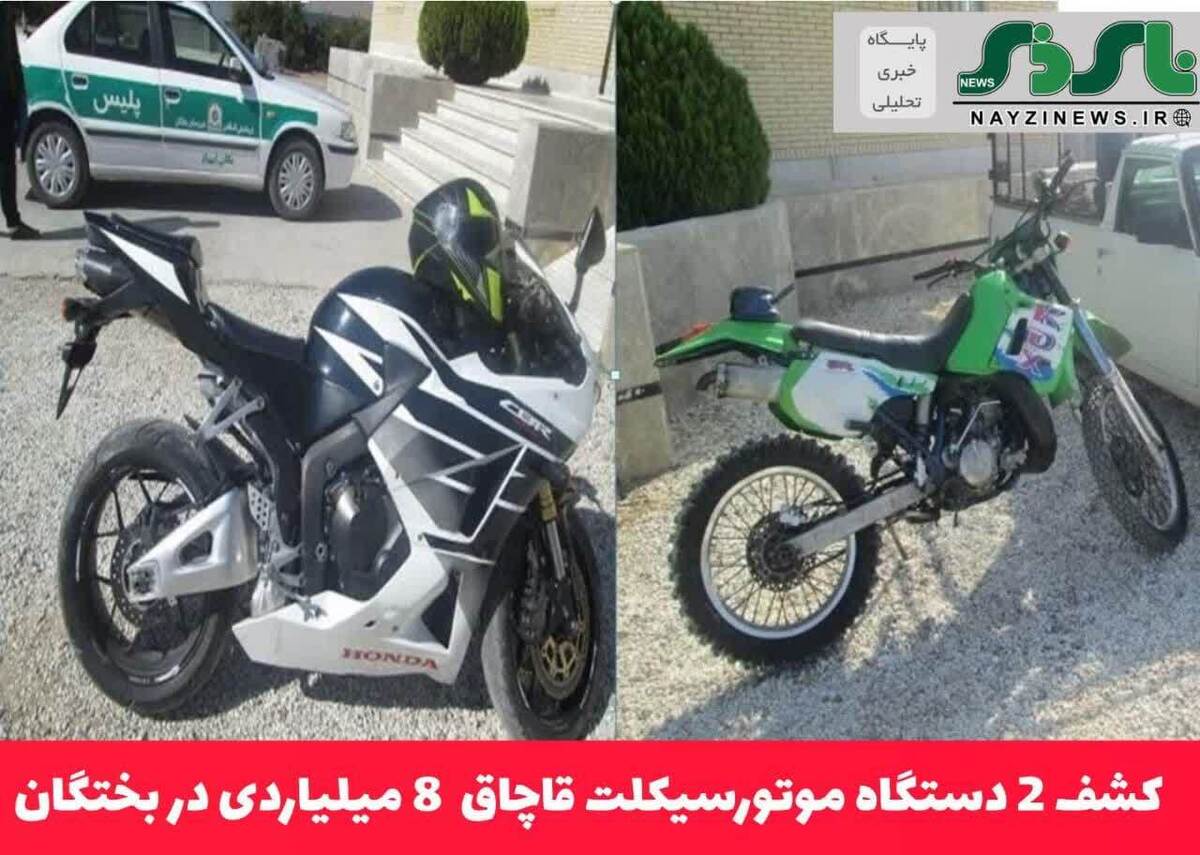 کشف ۲ دستگاه موتورسيکلت قاچاق  ۸ ميلياردی در بختگان