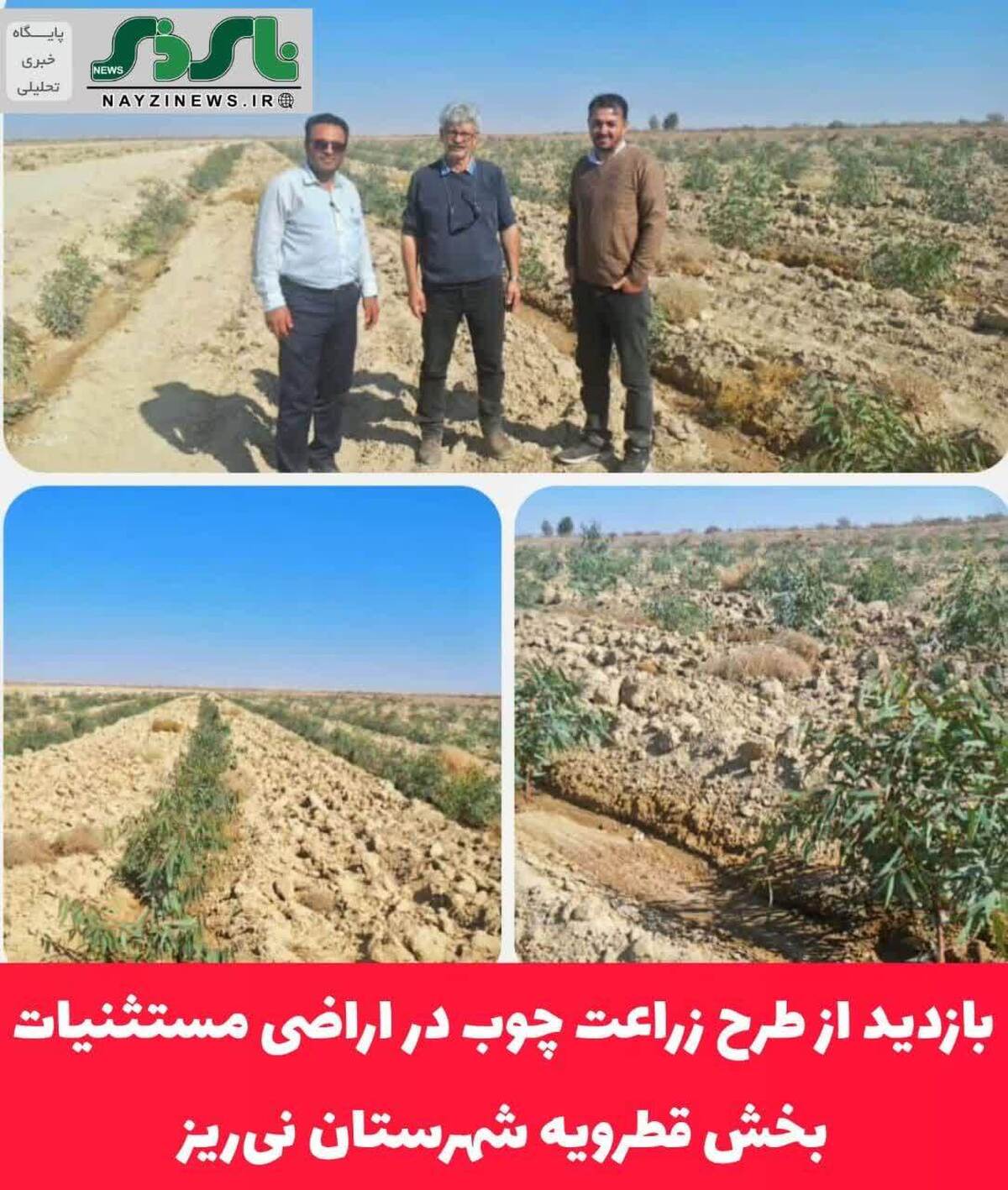 در ادامه برنامه‌های توسعه‌ای حوزه منابع طبیعی، طرح زراعت چوب در اراضی مستثنیات بخش قطرویه شهرستان نی‌ریز مورد بازدید مسئولان قرار گرفت.