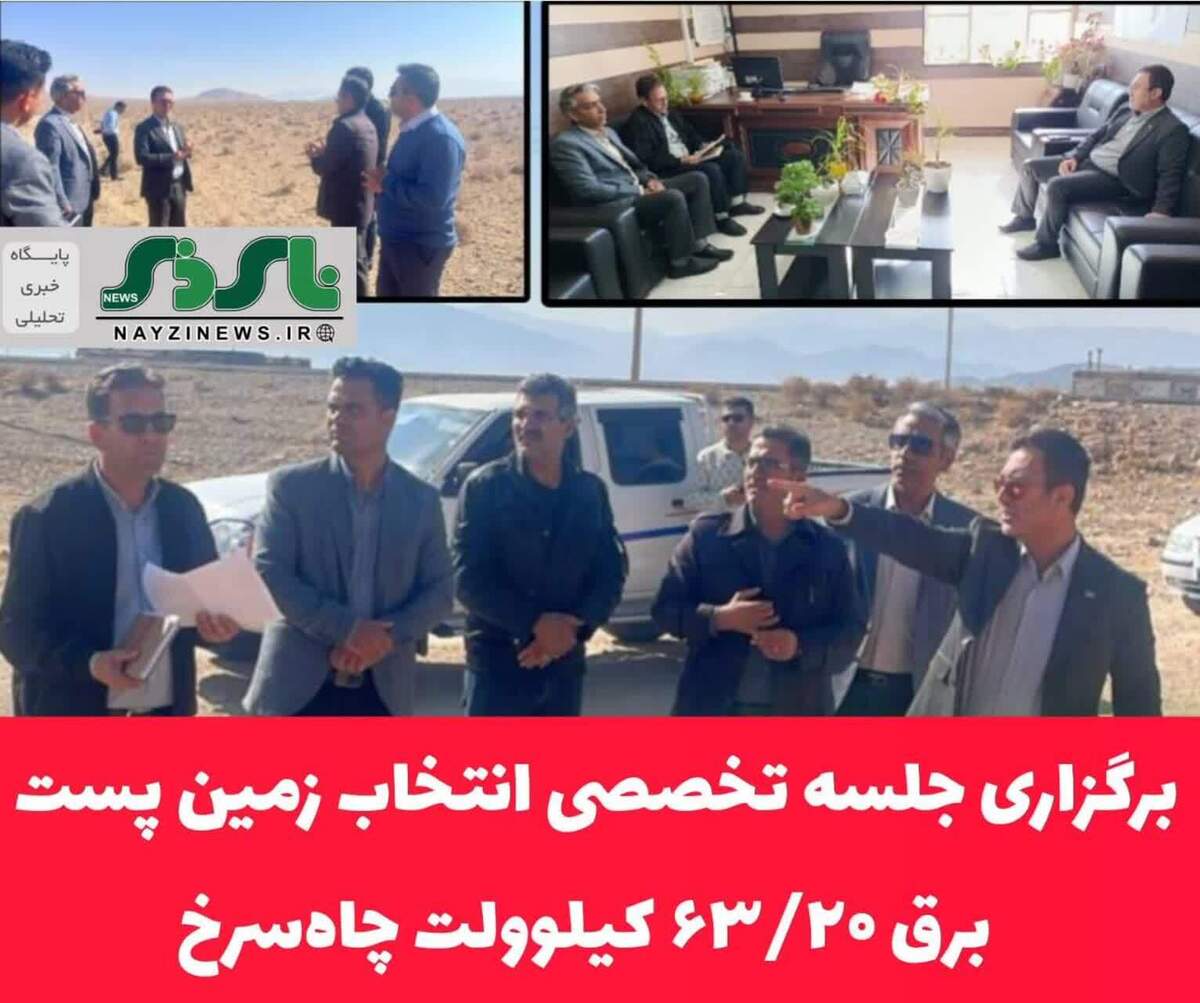 جلسه بررسی و انتخاب زمین مناسب جهت احداث ایستگاه پست ۶۳/۲۰ کیلوولت چاهسرخ با حضور امین عباسی سرپرست فرمانداری شهرستان بختگان، کارشناسان شرکت برق منطقهای فارس و رییس اداره برق شهرستان برگزار شد.