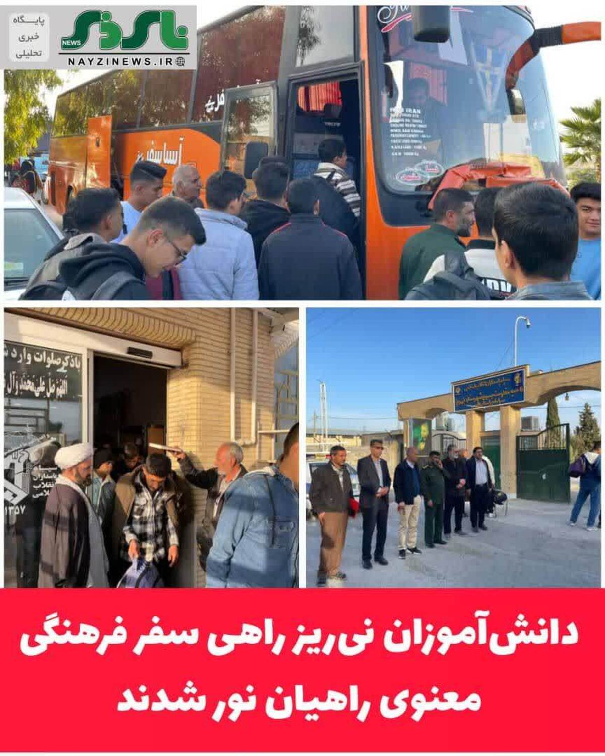 صبح امروز، دو دستگاه اتوبوس حامل دانشآموزان پسر نیریز در قالب کاروان راهیاننور، با حضور مهندس مراد هدایت، فرماندار شهرستان، مجید منفرد نیریزی، مدیر آموزش و پرورش و دیگر مسئولین شهرستان، از محل ناحیه مقاومت بسیج سپاه نیریز به مناطق عملیاتی جنوب کشور اعزام شدند.