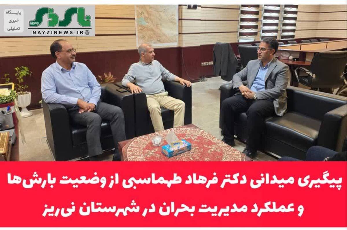 در پایان این دیدار، دکتر فرهاد طهماسبی ضمن قدردانی از فرماندار شهرستان نیریز، شهرداران و تمامی دستگاههای اجرایی و خدماترسان، از تلاشهای شبانهروزی پرسنل و نیروهای عملیاتی که در شرایط بارندگی اخیر برای جلوگیری از بروز مشکلات برای مردم فعالیت داشتند، تشکر کرد.