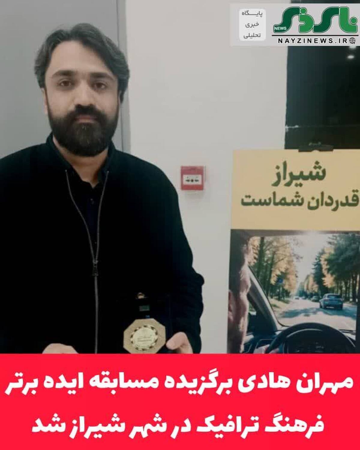 مهران هادی، فیلمساز و عضو انجمن عکس و فیلم نی ریز به عنوان سفیر ترافیکی شهر شیراز با ارائه ایده ای نوآورانه در حوزه فرهنگ ترافیک به عنوان ایده برتر مورد تجلیل قرار گرفت .