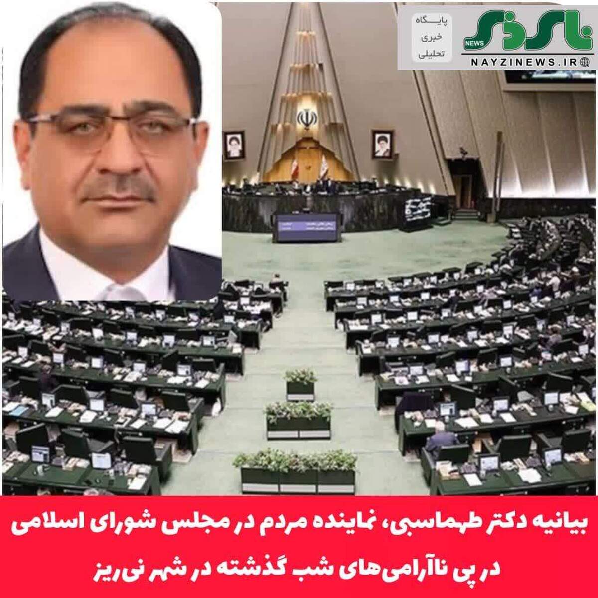 اینجانب بهعنوان نماینده شما مردم شریف در مجلس شورای اسلامی، ضمن تأکید بر حق قانونی و مشروع شهروندان در بیان مطالبات و اعتراضات مدنی، از عموم مردم عزیز نیریز درخواست میکنم با حفظ آرامش، متانت و عقلانیت، فریب جریانهای اغتشاشگر و عناصر فرصتطلب را نخورده و بههیچوجه با اقدامات مخرب و خشونتآمیز همراهی نکنند.