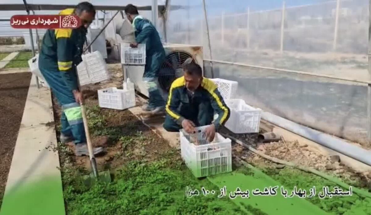 استقبال از بهار با کاشت بیش از ۱۰۰ هزار نشاء گل فصلی توسط شهرداری نی ریز