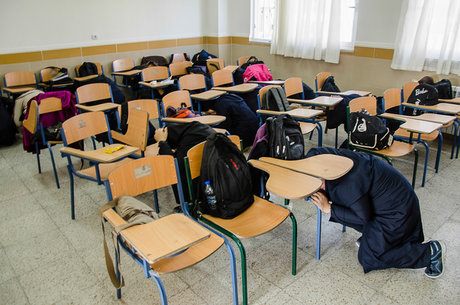 نمادین و با پخش آژیر زلزله از بلندگو به اجرا درآمد و دانشآموزان با اقدامات